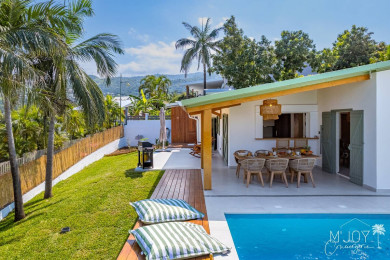 La villa Mamaô est une magnifique maison familiale de 110m² avec vue sur l'océan et piscine chauffée, et qui bénéficie d’un emplacement privilégié à 5 minutes du centre-ville d'Etang Salé.