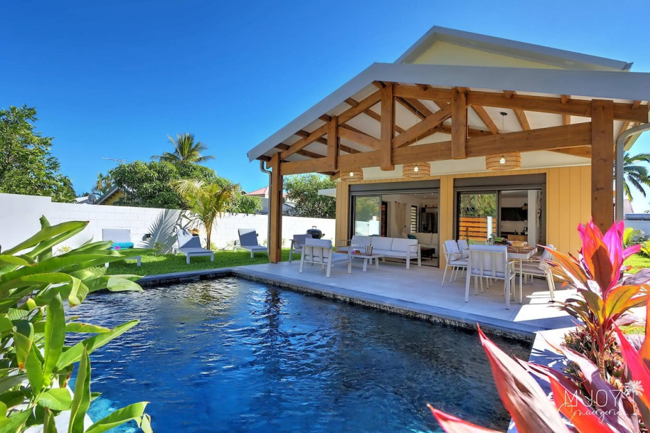 La Villa Lucia est sans conteste le parfait combo pour vos vacances sur l’île de la Réunion : une villa neuve de 2024 classée meublé de tourisme 5*, spacieuse, disposant de 3 chambres de standing climatisées, une belle piscine en pierres naturelles et un bel espace extérieur.