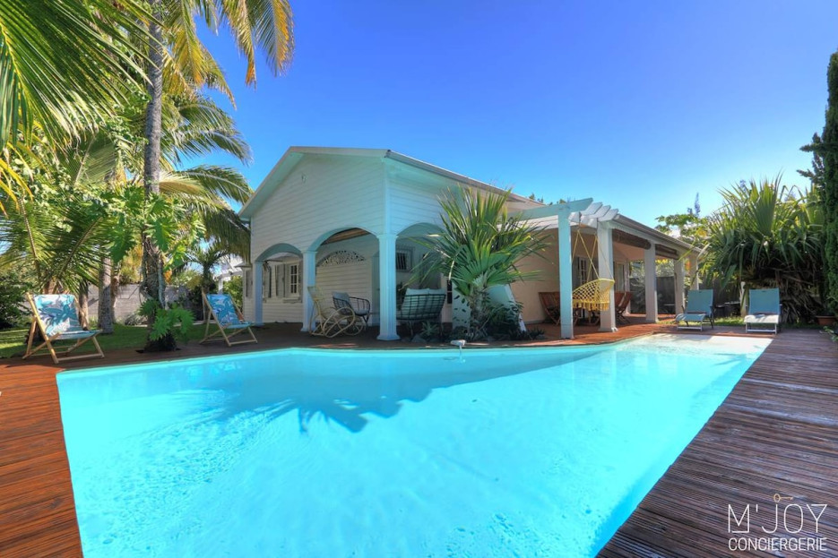 Cette jolie villa de charme créole réunit tous les ingrédients pour des vacances parfaites : soleil toute l’année, piscine, magnifique jardin, le tout à 100m du superbe lagon et à proximité des commerces.